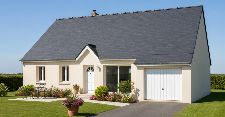 BREHAL : Idéalement situé dans le bourg avec toutes commodités et à quelques minutes de Saint Martin de Bréhal, Maison neuve de plain pied à vendre sur le lot 12 de la résidence de la vallée 2 (vente après achèvement : vous payez la maison quand elle est finie ! fin des travaux prévu en mars 2026) comprenant: salon/séjour, cuisine, 3 chambres, salle d'eau, garage . Construction aux normes RE 2020 et PMR (personne à mobilité réduite), chauffage avec radiateur à eau et eau chaude sanitaire par pompe à chaleur air/eau, menuiseries PVC et aluminium blanc RAL 9016, volet roulant, terrain de 473 m². Prix comprenant finitions intérieures (sauf cuisine aménagée, peintures et revêtements de sol dans les chambres, pelouse et les clôtures). Idéal pour la retraite ou pour investir.