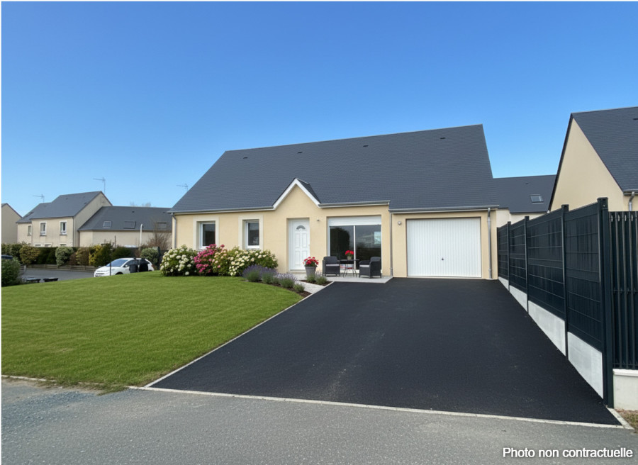 BREHAL : Idéalement situé dans le bourg avec toutes commodités et à quelques minutes de Saint Martin de Bréhal, Maison neuve de plain pied à vendre sur le lot 12 de la résidence de la vallée 2 comprenant: salon/séjour, cuisine, 3 chambres, salle d'eau, garage . Construction aux normes RE 2020 et PMR (personne à mobilité réduite), chauffage avec radiateur à eau et eau chaude sanitaire par pompe à chaleur air/eau, menuiseries PVC et aluminium blanc RAL 9016, volet roulant, terrain de 473 m². Prix comprenant finitions intérieures et extérieures (sauf: cuisine aménagée). Idéal pour la retraite ou pour investir. (photo non contractuelle)